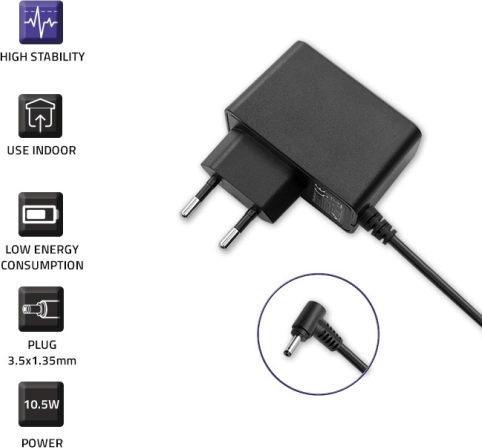 Ensure safe power supply for a wide range of electronic devices with the compact and powerful Qoltec Plug-in Adapter 10.5W with a 3.5x1.35mm plug.