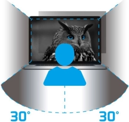 The filter prevents screen viewing from the sides with micro-louvre technology. At an angle of 30 degrees, the screen is completely dark.