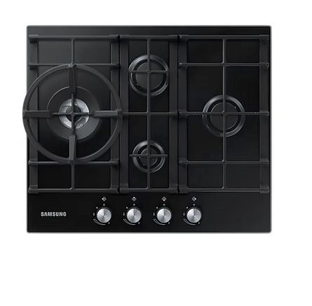 The Samsung gas cooktop represents a fusion of top-notch design and high performance. It is equipped with four burners of different sizes, allowing cooking at various temperatures, and it is designed for efficient and variable cooking.