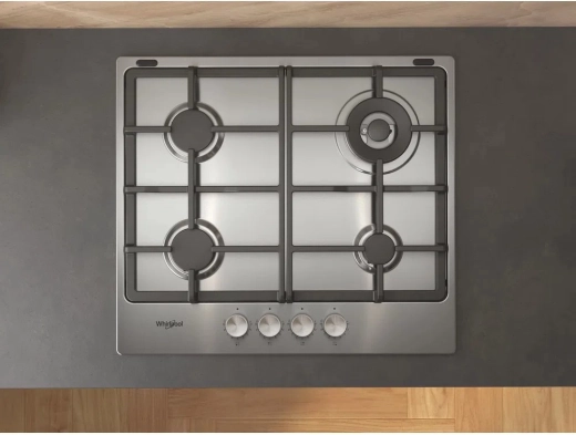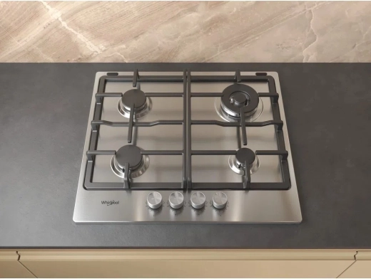 Whirlpool 60 cm Gas Hob with 4 Burners and Cast-Iron Grates