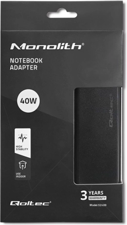 Constant 12 V / 3.33 A output for reliable laptop operation. Higher efficiency means fewer losses and lower heating during everyday use.