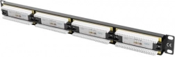 The patch panel is a passive element of structured cabling that serves to terminate and organize twisted pair cables in 19" rack enclosures. It is equipped with 24 unshielded RJ-45 ports of category 6. The use of IDC/LSA connectors ensures easy and quick installation.