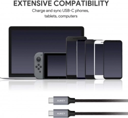 The AUKEY USB‑C to USB‑C cable is a reliable solution for charging laptops, tablets, and phones. Thanks to support for USB Power Delivery up to 60 W, it replenishes power quickly and safely, while the premium build with gold‑plated connectors and multi‑layer shielding ensures stable data transfer even with daily use.