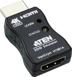 A compact adapter for emulating and storing EDID from a connected display ensures stable compatibility and smooth video transmission up to True 4K resolution. It enables reliable HDMI communication, eliminates dropouts caused by missing or incorrect EDID sync, and improves signal stability between the source and the display.
