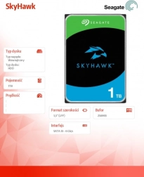 SkyHawk Hard Disk with 1 TB capacity is designed for the needs of surveillance systems. This drive offers high capacity for round-the-clock workloads and utilizes ImagePerfect technology for more efficient and quieter operation.