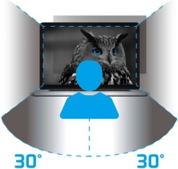 Narrowed viewing angles ensure the content is readable from the front, while from side angles the image significantly darkens and from about 30° it appears black.