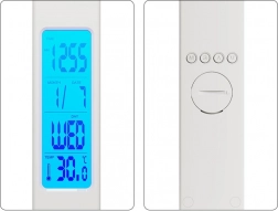 • LED display with time, alarm, and temperature functions