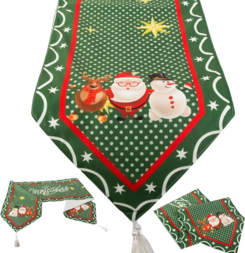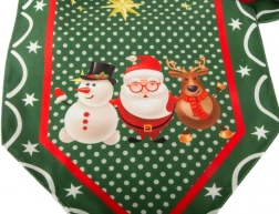 The green background with stars and the characters of Santa, a snowman and a reindeer instantly brightens any table and enhances the Christmas atmosphere.