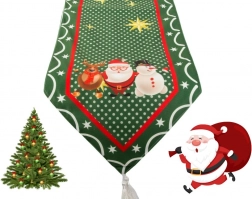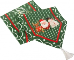 Cozy up your festive table with a stylish green runner measuring 205 × 35 cm. The pattern with Santa, a snowman and a reindeer, a red trim and decorative tassels brings a festive atmosphere to your dining and also protects the table surface from stains and scratches.
