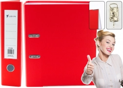The red A4 lever arch file is an ideal choice for clear and secure management of papers, invoices, and contracts. The durable 2 mm board construction with a nickel-plated lever mechanism ensures long service life and smooth document handling. A spine label for descriptions and a metal finger ring make organizing and removing from shelves easier.
