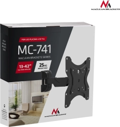 The universal Maclean articulating mount for TVs and monitors with a 13–42 screen size offers a load capacity up to 25 kg, support for VESA 75×75 to 200×200, and an adjustable wall distance of 59–228 mm. Thanks to its sturdy metal construction and complete mounting kit, it is an ideal choice for secure and flexible screen mounting.