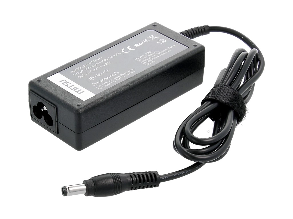 Reliable Mitsu power adapter for FUJITSU and MAXDATA laptops with 65 W output, 20 V / 3.25 A, and a round connector 5.5 × 2.5 mm. Offers overvoltage, overload, overheating, and short-circuit protection and is equipped with a ferrite filter for stable and safe power delivery.