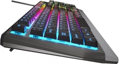 Rhod 300 RGB is a multifunction keyboard with an unusual design. A durable membrane mechanism ensures a quick response for an exceptionally pleasant gaming experience. Durable switches combined with an elegant design guarantee unforgettable moments on the virtual battlefield.