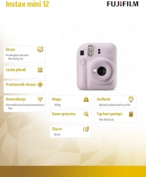The camera features a built-in flash and a lens optimized for the popular Instax Mini format, making it easy to take well-exposed photos indoors and outdoors. Its compact body fits comfortably in your bag and is ready to capture spontaneous moments anytime.