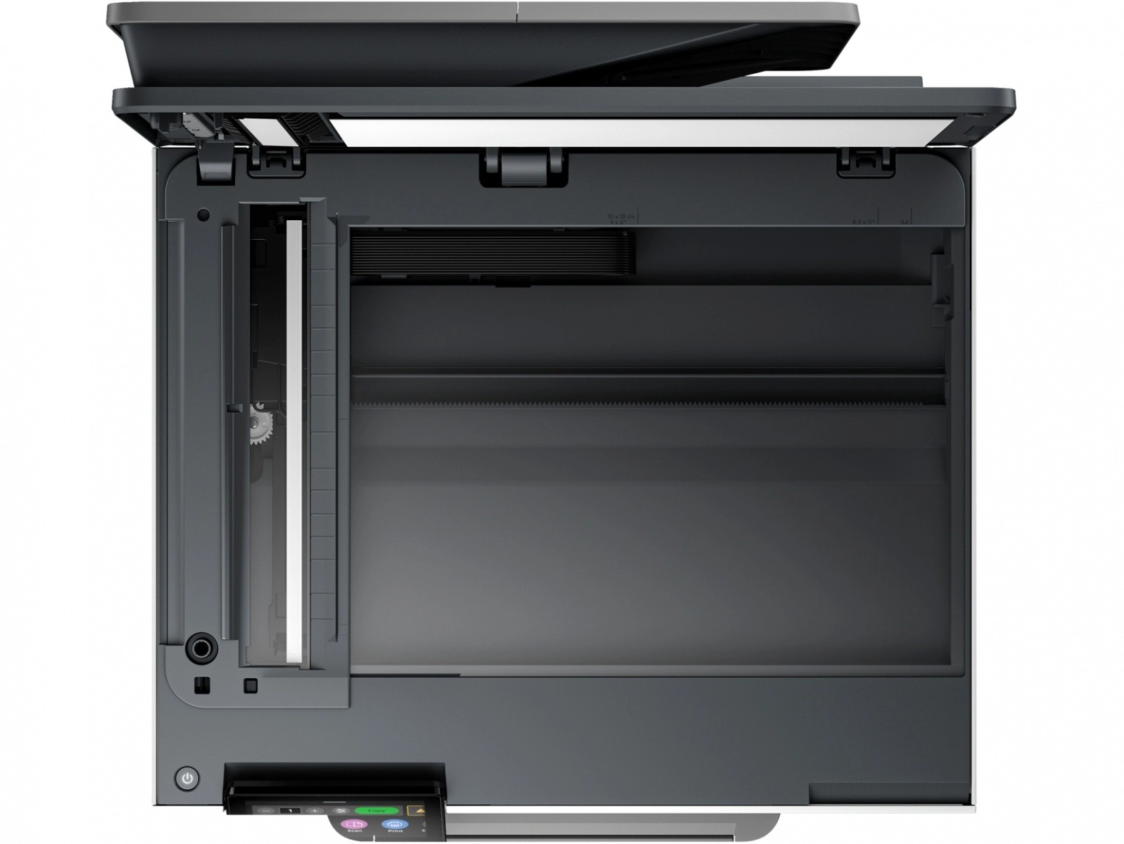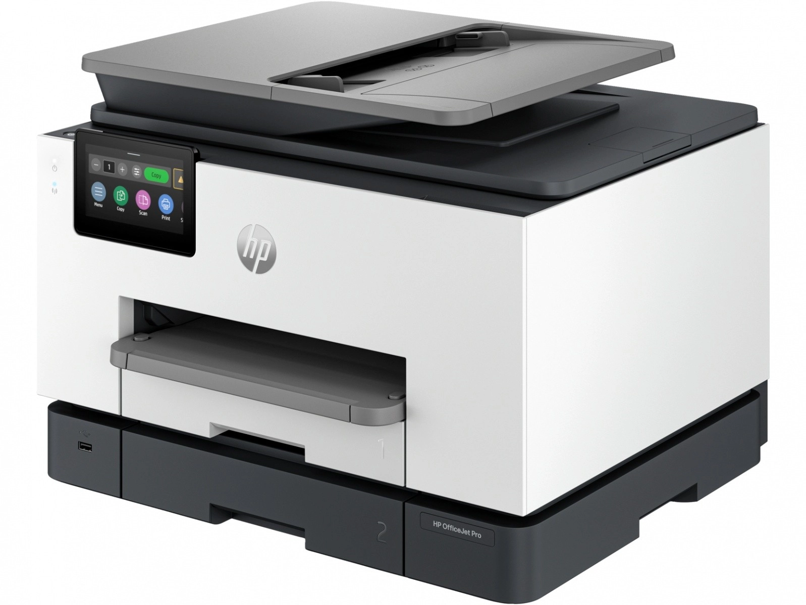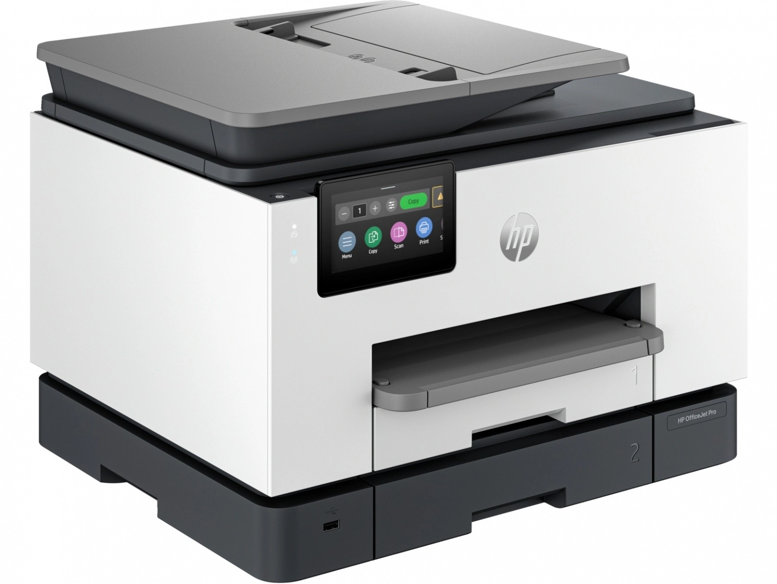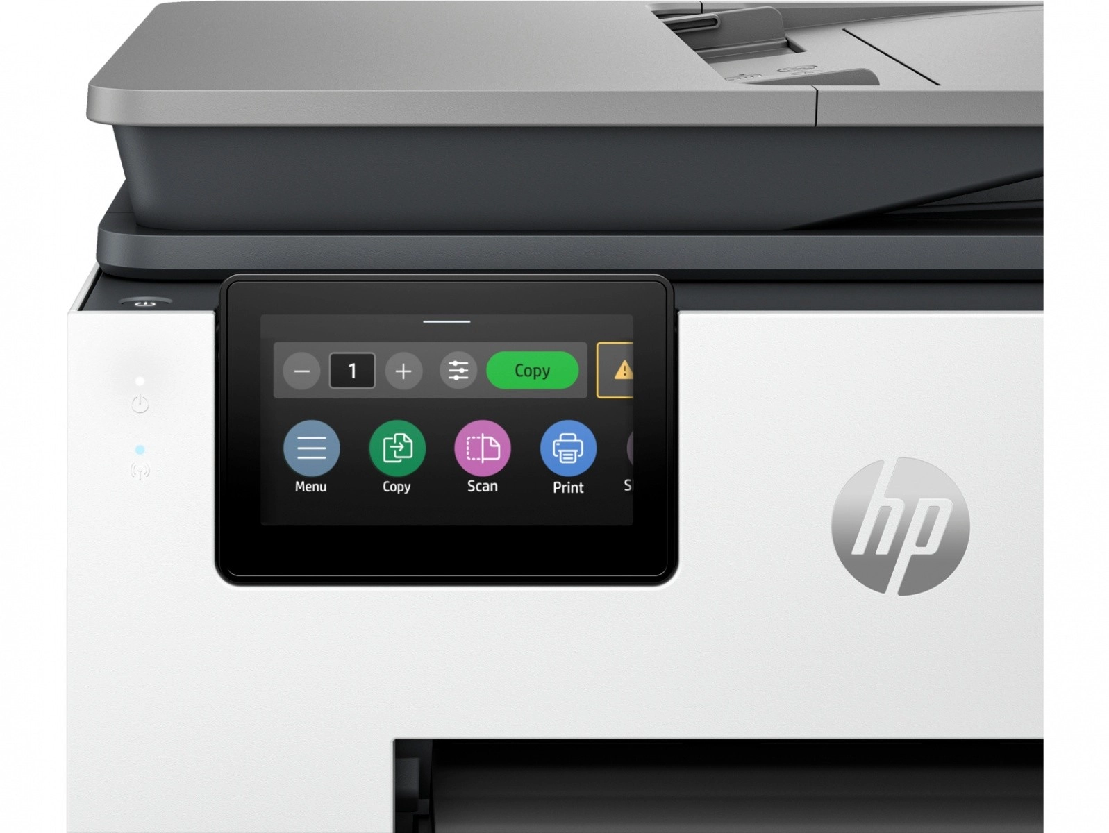 HP OfficeJet Pro offers high print resolution up to 4800 x 1200 dpi, ensuring sharp and professional outputs. With a printing speed of up to 25 pages per minute in black and white and 20 pages per minute in color, it is ideal for environments with high printing demands. Thanks to two input trays with a capacity of 250 sheets each and an automatic document feeder holding 35 sheets, efficient paper handling is guaranteed. The 4.3-inch color touchscreen simplifies control and navigation between functions.