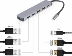 USB-C Adapter USB-C Hub PD HDMI x2 USB 3.0x3