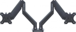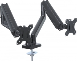Enjoy maximum comfort and flexibility at work with the dual monitor stand, designed for monitors with screens ranging from 13 to 32 inches. This stand offers the possibility of vertical tilt from -45° to +90°, horizontal rotation of 360°, and the PIVOT function for screen rotation. With its sturdy construction and integrated cable management system, it is the ideal solution for organizing your workspace.