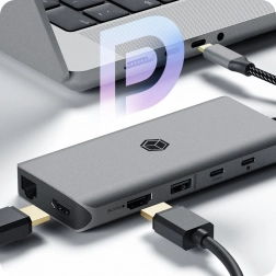 This compact USB‑C docking station maximizes your laptop’s connectivity. The aluminum body and braided cable provide high durability, while the slim design slips easily into a bag or pocket. Connect it with a single cable to instantly gain ports for work, entertainment, and fast data.