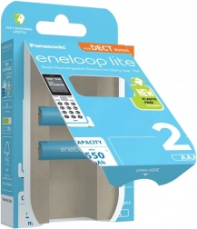 Lightweight and efficient ENELOOP Lite rechargeable batteries in AAA size with a minimum capacity of 550 mAh are ideal for wireless DECT phones, keyboards, mice, and flash units. They offer up to 3000 charge cycles, retain approximately 85% capacity after 1 year, and work reliably even at −20 °C. They come pre-charged with solar energy, feature plastic-free packaging, and operate at 1.2 V. The pack contains 2 pcs.