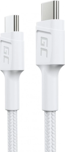 White USB-C to USB-C 30 cm Green Cell PowerStream cable, Power Delivery 60W, Quick Charge 3.0
