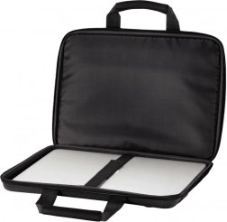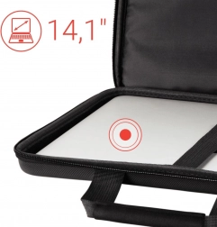 This black 14.1″ laptop bag combines an elegant look with thoughtful functionality. The durable construction protects your laptop from scratches and dirt, while the inner elastic hook-and-loop strap keeps it secure during movement.