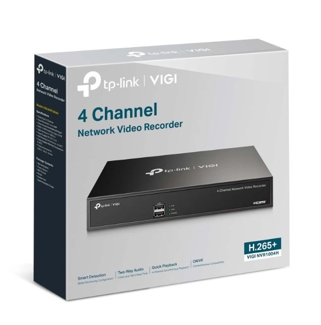 The VIGI NVR1004H provides reliable management of a surveillance system for up to four IP cameras. Thanks to the 4K HDMI output and decoding options of up to 2× 8MP or 4× 4MP channels, you can display detailed images in real time and from recordings. Efficient H.265+ compression reduces bandwidth and storage requirements without sacrificing video quality.