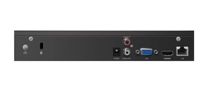 Simultaneous HDMI and VGA, LAN for network connection, and USB ports for management and backup.