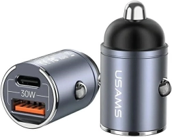 Elegant and powerful USAMS car charger with 30W capacity offers quick charging via USB and USB-C ports, supporting Power Delivery and Quick Charge technology. It is the ideal choice for those who appreciate minimalism and efficiency at the same time.