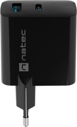 With the Natec Ribera GaN charger, you can conveniently charge two devices at the same time. The charger is equipped with two USB ports (USB-A and USB-C) with a total output of 45W. Fast charging is supported by technologies such as Power Delivery 3.0, Quick Charge 3.0, and others. It automatically adapts to the type of connected device, meaning a quick time saving compared to traditional solutions.