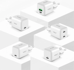 This white VOLT charger with innovative GaN (Gallium Nitride) technology offers increased efficiency and compact dimensions for versatile use. Thanks to this technology, the charger is 30% smaller than traditional chargers while providing up to 20W of power. It is ideal for travel or as a backup charger due to its low weight and dimensions.