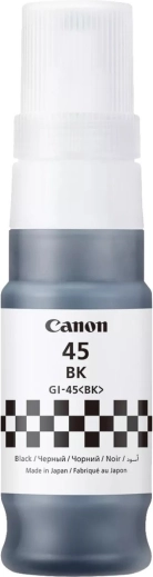 The Canon GI-45BK black ink bottle contains black pigment ink for crisp printing of business documents and photos at home or at work. This bottle saves you money because the inks allow you to print up to 3,000 pages (up to 4,500 pages in economy mode). It is an excellent solution that reduces costs over time. The inks are compatible with new display features, so printed documents are brighter and have a longer lifespan.