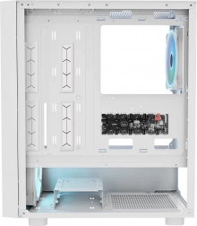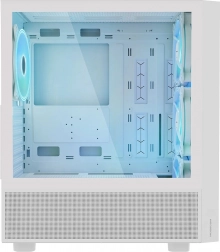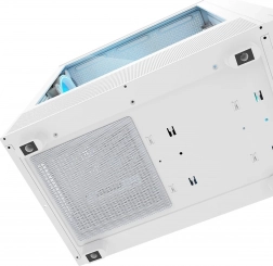 The tempered glass side panel is secured with practical snap‑in mounts. You don’t have to unscrew screws every time you need to swap a component or clean the interior. Beneath the removable glass, a ventilated metal section of the frame further helps reduce component operating temperatures. These solutions are designed to maximize the case’s functionality.