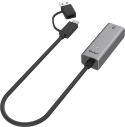 Unitek Adapter USB-C/USB-A to Ethernet RJ-45 offers high-speed connectivity for devices lacking an Ethernet port. It is compatible with USB-A and USB-C ports, allowing use with older and newer devices. With support for IEEE 802.3 standard and data transfer speeds up to 2,500 Mbps, you can enjoy stable internet without connection issues.