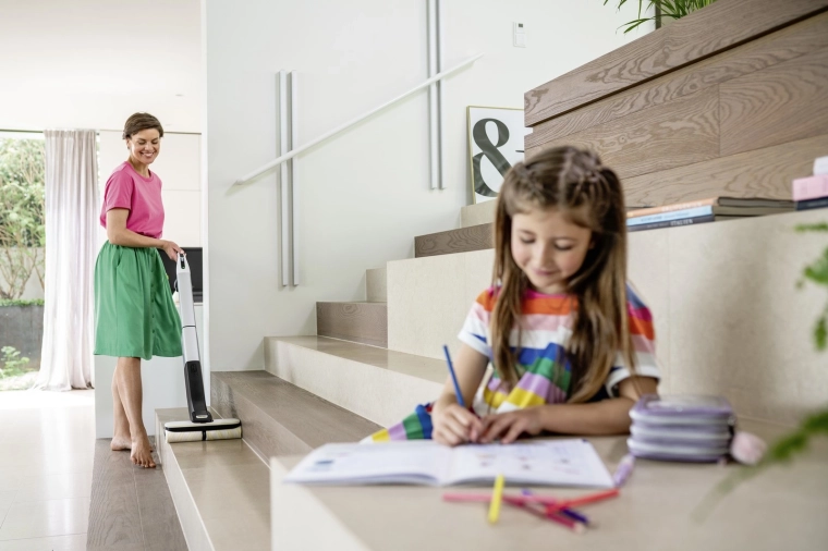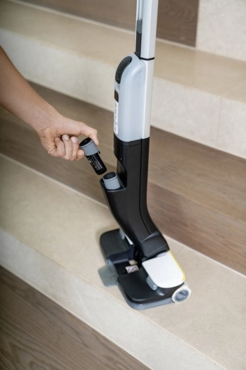 The cordless KÄRCHER FC 4-4 Battery Set combines vacuuming and mopping in one step – effectively removing dry and wet debris, hair, and pet fur. It offers up to 30 minutes of runtime, fast recharging, and two water dosing modes for all hard floors. Thanks to its self-standing design, hygienic tank system, and easy maintenance, it’s ideal for everyday cleaning of the whole home.