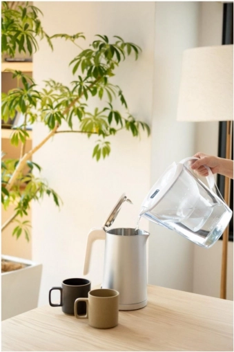 BRITA Marella XL is a practical water filter jug for the whole family. It offers a generous volume for daily hydration, convenient filling thanks to the flip-top lid, and is dishwasher-safe (except for the lid with the electronic indicator). With every sip you get freshly filtered water without unwanted taste or odor, perfect for making coffee, tea, and cooking.