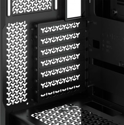 The case offers many options for fan mounting on the sides, top, and bottom, ensuring optimal temperature even for high-performance components. With a spacious interior, it can accommodate most large graphics cards and processor cooling systems and allows the installation of up to 360mm radiators for water cooling.