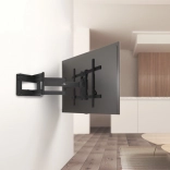 A robust metal construction with black powder coating ensures stability and long service life. Thanks to the very long, dual arm, you can position the TV exactly as needed—from extending from the wall to swiveling and tilting for the ideal viewing angle. After installation, you can also easily fine-tune the horizontal level (+5/−5°).