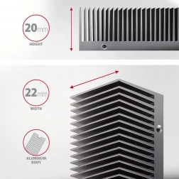 Keep your M.2 SSD at optimal temperature without performance loss. The aluminum heatsink with transverse fins and metal frame increases the heat dissipation area and, thanks to thermal pads, effectively cools single- and double-sided drives. The compact design with an overall height of 24 mm allows installation even in tight spaces, for example in cases with limited clearance above the slot.