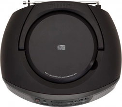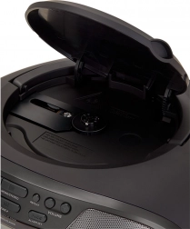 This boombox supports CD, CD-R, RW, and MP3 playback with the ability to program tracks. With FM radio with 40 presets, you'll always have access to your favorite stations. There's also a large LCD display, digital clock, and alarm function.