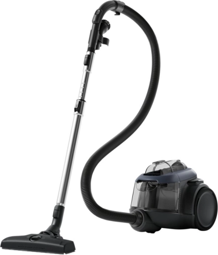 The Electrolux Clean 600 EL61C3DB combines efficient cyclonic dust separation with ergonomic design for comfortable daily cleaning. It maintains stable suction even with a full bin, and its compact body allows vertical or horizontal storage.