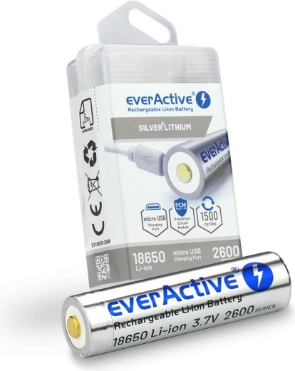 Rechargeable 18650 Battery 3.7 V Li-ion 2600 mAh with Micro USB EVERACTIVE