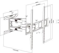 The universal wall mount is compatible with leading TV brands like Sony, LG, Samsung, Philips, Sharp, Panasonic, and many others. Designed for LCD, LED, and OLED TVs up to 100 inches, as long as they meet the VESA standard and do not exceed the maximum weight. VESA Standard Support: The mount supports various sizes: 100x200, 200x200, 200x300 up to 800x600 mm. Long, dual arm allows wide screen rotation options and leveling option +3/-3° after installation.