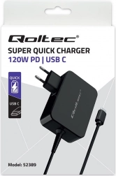 The Qoltec charger is lightweight yet durable, featuring compact dimensions and a modern design. Its universal color and aesthetic appearance enhance its appeal. By using one charger for multiple devices, you can save money and space while also reducing electronic waste and contributing to environmental protection.