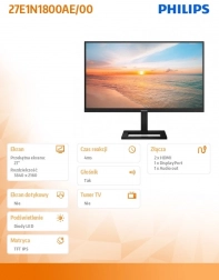 The Philips 27" IPS 4K monitor is an ideal choice for graphics work, spreadsheets, and entertainment. The 3840 × 2160 resolution delivers fine, detailed images, IPS technology ensures faithful colors and wide viewing angles. Integrated speakers save desk space and offer convenient listening.