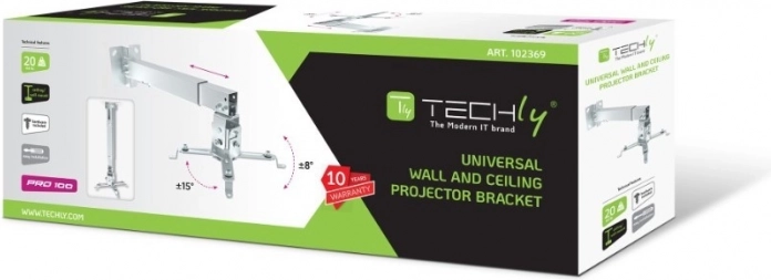 The Techly Universal Wall-Ceiling Projector Mount offers secure installation for projectors weighing up to 20 kg. With its telescopic arm, the projector can be placed at an optimal distance for the best projection.