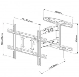 This mount supports VESA standards up to 600x400 mm, guaranteeing compatibility with various TV models. Thanks to the integrated cable management system, everything will look neat without tangled cables. Installation is easy with included components such as anchors and screws.
