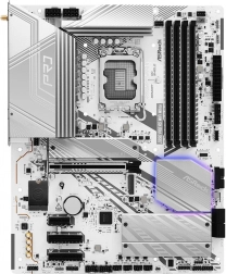 The ASRock Z890 PRO RS WIFI WHITE combines the futuristic Race Sport (RS) design with features for current and future builds. Support for Intel Core Ultra (2nd generation) processors on LGA1851 and four DDR5 slots with OC up to 8666+ (OC) pushes performance to a new level. You get PCIe 5.0 x16 for the latest graphics cards and fast storage via Blazing M.2 (Gen5) plus multiple Hyper M.2 (Gen4) slots.