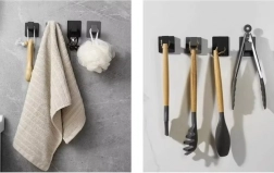 A practical set of four minimalist aluminum hooks with a matte black finish for the bathroom, kitchen, and hallway. Thanks to the mounting tape, they offer strong adhesion up to 5 kg, are moisture-resistant, and install without drilling. They can also be removed easily without damaging the surface.