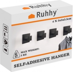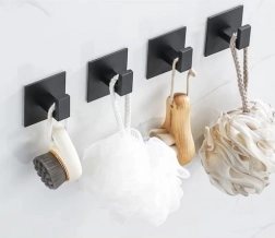 Self-adhesive metal bathroom hooks 4 pcs RUHHY, matte black