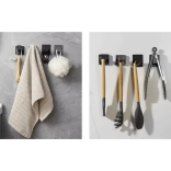 Organize your space with style and ease. RUHHY self-adhesive hooks in a loft design feature a powder-coated finish that withstands moisture and corrosion, and their high-quality double-sided tape holds reliably even in the bathroom. The hooked tip prevents slipping – even a heavy wet towel won’t slide off.